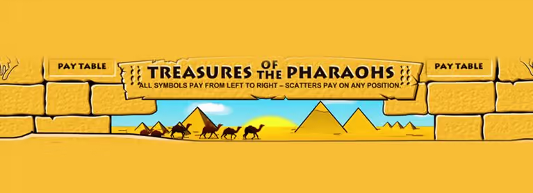 Treasures of Pharaohs keeps it straightforward: three reels and a single horizontal payline across the middle. Land matching symbols on that line and you get paid. Symbols you’ll watch for include the Scarab Amulet (highest-value), Bars, Bracelet, and Coin — each has its own place on the paytable so you can size up potential wins at a glance.